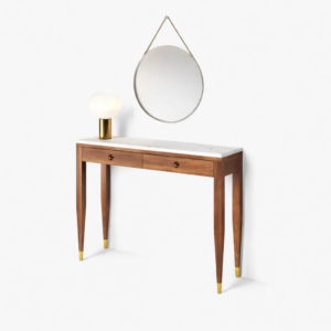 Mid-Century Marble Top Console Table with Drawers – Solid Wood Entryway Table with Brass Accents