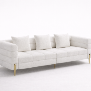 Luxury White Bouclé 3-Seater Sofa with Gold Legs | Sofa Showroom in Ahmedabad