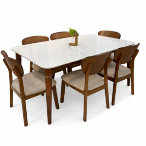 Modern 6 Seater Dining Set in Ahmedabad | Marble Top Wooden Dining Table with Chairs