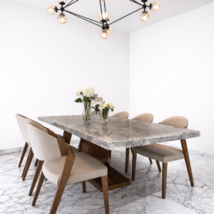 Modern 4 Seater Marble Dining Set in Ahmedabad | Luxury Marble Top Dining Table with Upholstered Chairs