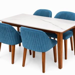 Modern 4 Seater Marble Top Dining Table Set in Gujarat – Premium Wooden Base Dining Set