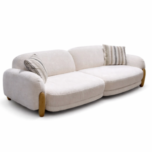 Modern Curved Designer Sofa with Wooden Base | Luxury 3-Seater Sofa – Best Furniture Shop Near Me