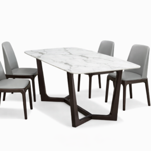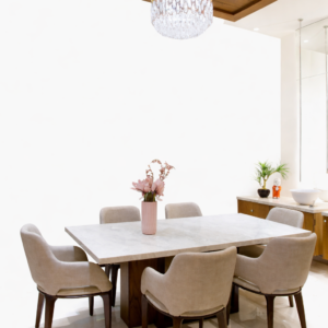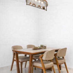 Modern Marble Top 4 Seater Dining Table Set with Upholstered Chairs – Luxury Dining Table in Ahmedabad