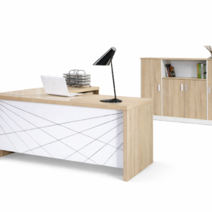 Modern Office Desk with Geometric Design and Matching Storage Cabinet