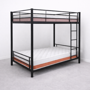 Black Metal Twin Over Full Bunk Bed Frame with Ladder and Safety Guardrails