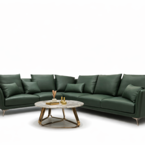 Best L Shape Sofa in Ahmedabad – Premium Green Leather Corner Sofa Set