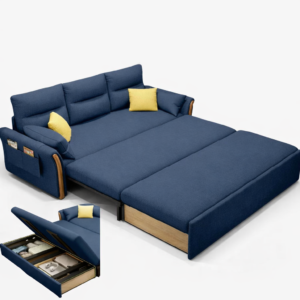 Blue Fabric Sofa Cum Bed with Storage – Modern 3 Seater Convertible Sofa Bed for Living Room | Sofa Cum Bed Set in Ahmedabad